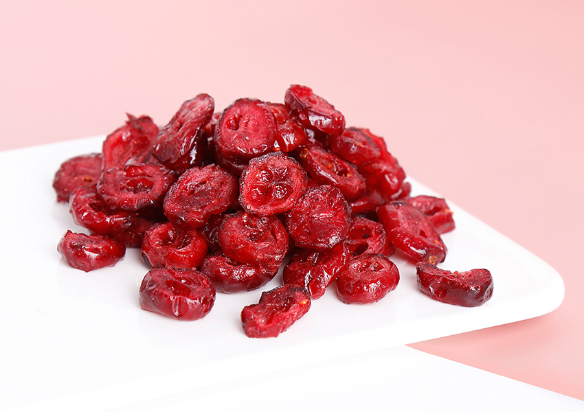 蔓越莓鮮果口感偏酸,特有的加工技術(shù)使接觸糖液的果肉表皮呈現(xiàn)甜味,同時(shí)也保留了蔓越莓果實(shí)內(nèi)的自然酸味,食用起來(lái)別具風(fēng)味。蔓越莓果干保留了蔓越莓90%的營(yíng)養(yǎng)物質(zhì),口感好。