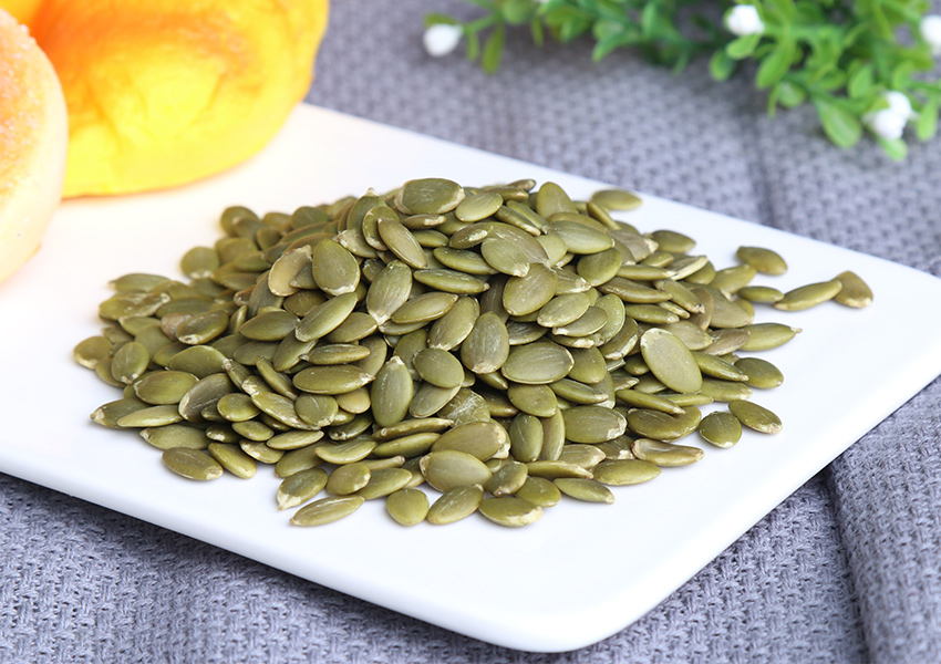 南瓜籽仁為葫蘆科植物南瓜的種子,呈扁橢圓形,一端略尖,外殼黃白色,干燥成熟的種籽。南瓜籽仁也可以炒熟后食用,也適用于作為烘焙輔料和炒熱菜配料等。