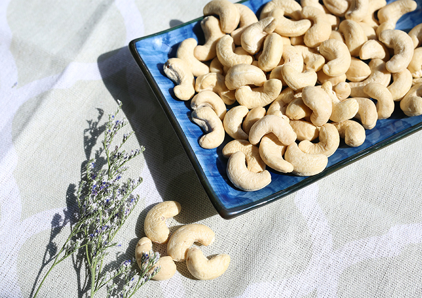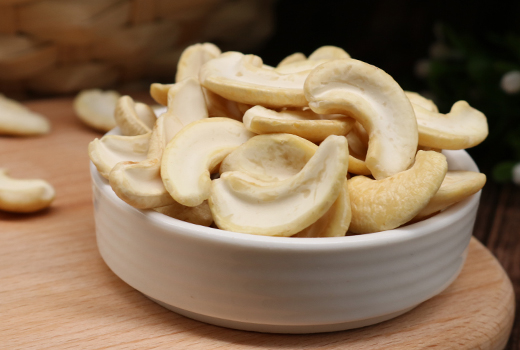 選用飽滿的腰果仁整粒,將其分成兩個半片,盡量保留腰果仁的形狀,烘焙和烹飪使用更靈活。